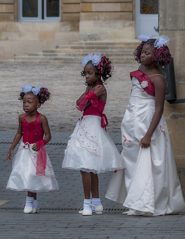 En Burdeos, en verano, con un nublado bochornoso inhabitual en esa estación, tres niñas aguardan a la puerta del Ayuntamiento, impacientes. Como van vestidas con galas impropias de su edad, y teniendo en cuenta que es sábado, lo más probable es que se trate de una boda. Seguramente, son las damas de honor de algún enlace que se va a producir en breve. Pero pasan los minutos, y sus rostros serios de desasosiego no auguran nada bueno. Parece que la situación, que debiera ser de alegría, se torna poco a poco en ansiedad. Las caras bien lo demuestran.