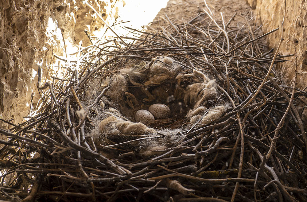 Todo comienza aquí, en un amasijo de ramas, virutas, lana, juncos, sabiamente entremezclados para formar un hueco, un lecho, donde reposar el cuerpo que dará calor a la siguiente generación. La vida se resume en imágenes como ésta, en la que lo elemental sobrepuja todo lo complejo o trascendente que podamos pensar. La vida se puede condensar en algo tan sencillo como es el modo de transmitirla; si bien no nos vale cualquier modo, sino que buscamos el añadido del mayor mimo que se pueda aportar.