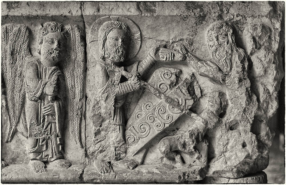 Y hoy, cuando reviso fotos de esculturas que me sugirieran algo sobre lo que escribir en la entrada siguiente del blog, recalo en la carpeta de Gerona, y encuentro esta toma de uno de los capiteles del claustro del Monasterio de San Pedro de Galligants, que forma parte del Museo de Arqueología de Gerona. Y la conexión se establece de inmediato. El resto sólo es edición fotográfica, por una parte, y referencia escrita mediante el teclado, por la otra. A la espera, como es natural, de que algún día ese relato regrese al mundo de la luz, y resucite de verdad como yo espero.