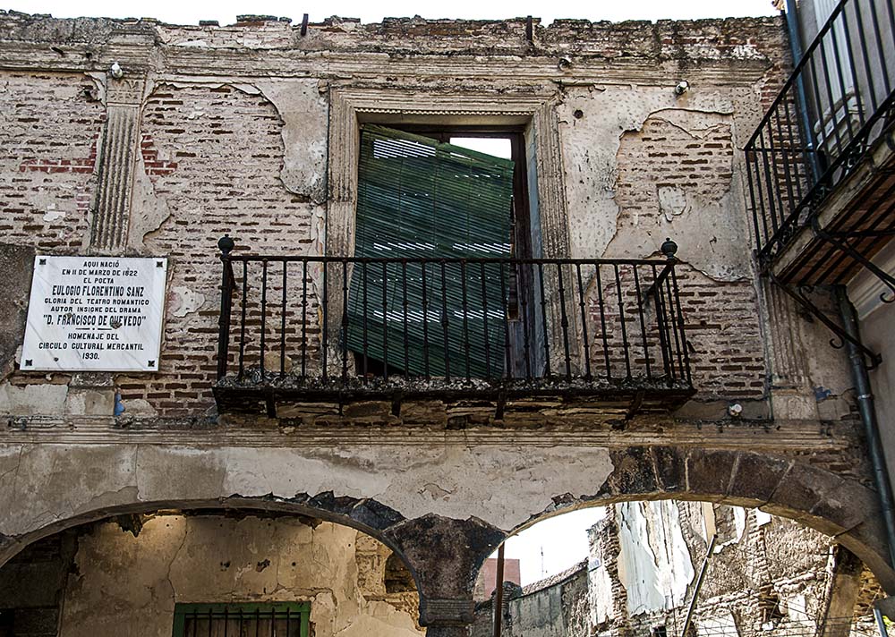 Esta imagen muestra parte de la fachada de la casa natal de un poeta en su localidad natal, Arévalo, en la provincia de Ávila. Del estado desvencijado de la misma no cabe apuntar nada (y eso que se encuentra en plena Plaza del Real grande y concurrida, pues en ella se ubica el Ayuntamiento), pues habla por sí misma. La lápida es una muestra de lo que llamamos orgullo local. Tiene su lógica, aunque se base en los sentimientos. Un señor nace en un sitio, tiene alguna relevancia en un momento, y los que nacen en el mismo lugar se creen -ingenuidad, obliga- que participan algo de sus capacidades y que sus logros les afectan directamente a ellos. Es una estupidez, claro; un absurdo. Pero uno lo entiende y tampoco hace gala de crueldad militante, como hizo el Périch -q.e.p.d.- (en una viñeta memorable decía no entender por qué en una localidad de 3.000 habitantes se ufanaran del éxito de uno ellos, pero no se condolieran del fracaso o la mediocridad de los 2.999 restantes). Por supuesto, a este poeta y dramaturgo no lo recuerda nadie, ni siquiera en su pueblo, pero parece que en el momento de la colocación de ese texto -1930- sí; aunque también pudo suceder que se beneficiara de la necesidad municipal de insuflar orgullo patrio en un momento concreto (las palabras “gloria” e “insigne” así lo indican).
