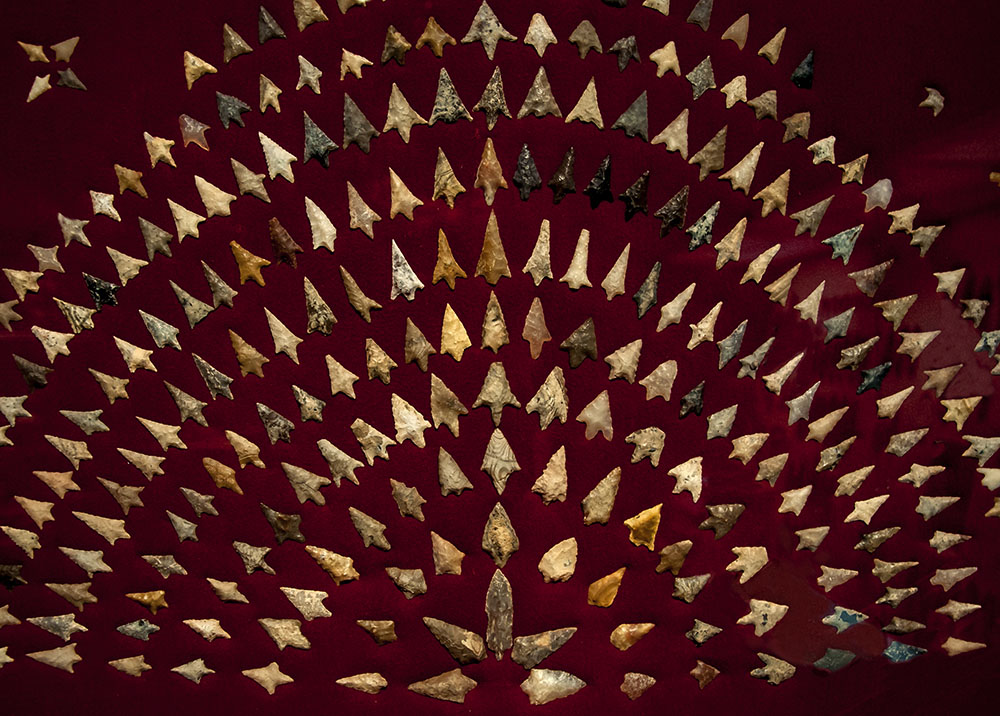 En el Museo de Aquitania se exponen piezas de muchas épocas, desde la prehistoria hasta el presente, varias de ellas sobresalientes. Esto que aquí se muestra es un ejemplo de la disposición de elementos repetitivos de un modo singular y atrayente. Se trata de micro-puntas de flecha de diferentes materiales líticos halladas en yacimientos saharianos por expediciones francesas. Datan de finales del paleolítico superior, enlazando con el Mesolítico. Es de apreciar tanto la abundancia de las mismas, como la delicada talla para obtener el elemento fundamental en uno de pasos clave en la evolución de la caza: el arco y las flechas. En la edición, se intentó minimizar el reflejo de las urnas de vidrio que contienen estos tesoros
