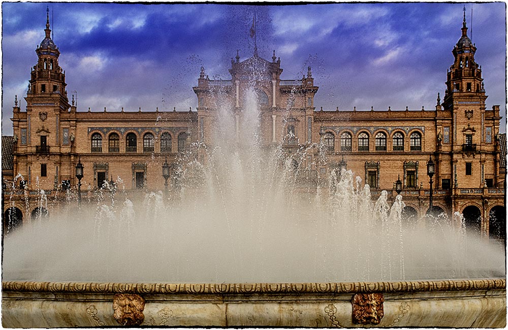Fuente y edificio principal de la Pza. de España, en Sevilla (Andalucía, España)