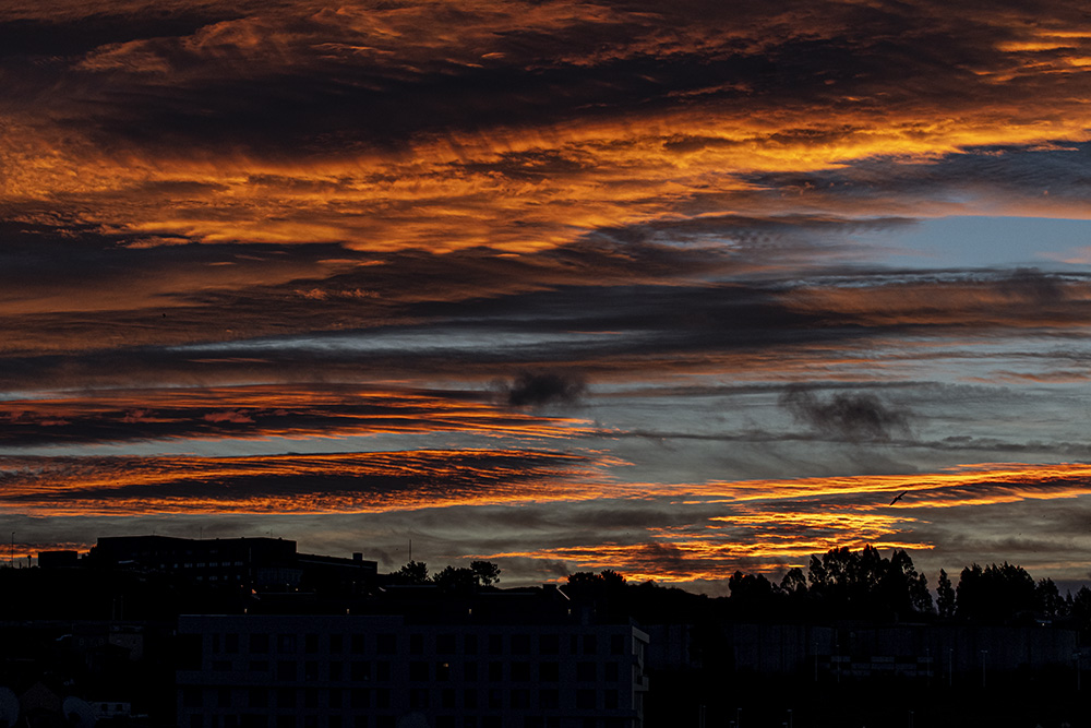 Mi nueva vivienda tiene muy buenas vistas por hallarse en un 8º y último piso de su edificio. En invierno, además, los amaneceres coinciden con el dormitorio principal, y desde él, a veces, se captan imágenes como ésta. Mínima edición