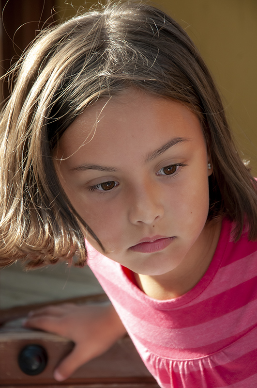A pesar de haber sido hecha en un parque infantil, la expresión, captada en un instante de reposo, no tiene nada que ver con el juego y el divertimento que ese día alegraron su rostro en multitud de ocasiones. Por el contrario, la actitud ensimismada, pensativa, ofrece un apunte más sobre la multiplicidad de la mente de una niña de 6 años. Mínima edición