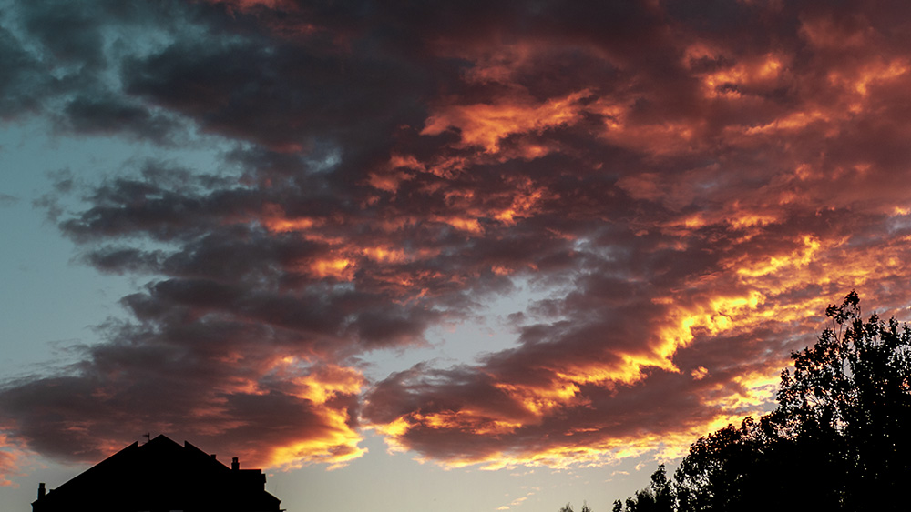 A veces, los atardeceres pueden mostrarse espectaculares sin estar de viaje: desde casa mismo puede contemplarse esta maravilla. Aunque la realidad no era tan impactante, admitámoslo, sí lo fue lo suficiente como para que me levantara del sillón y tomara la imagen. La edición, aumentando el contraste del contraluz y la saturación de color, hizo el resto