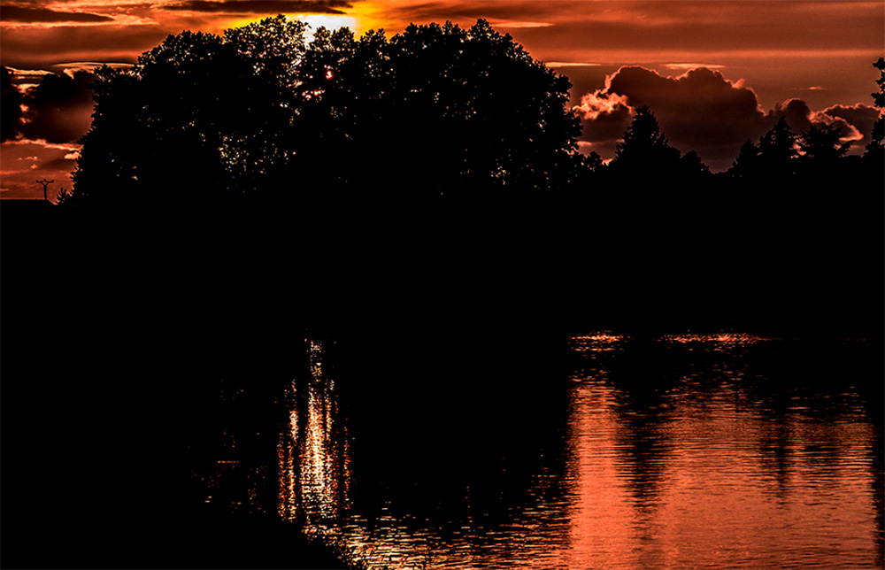 Atardecer sobre el río Adour, en Peyrehorade (Landas, Nueva Aquitania, Francia)