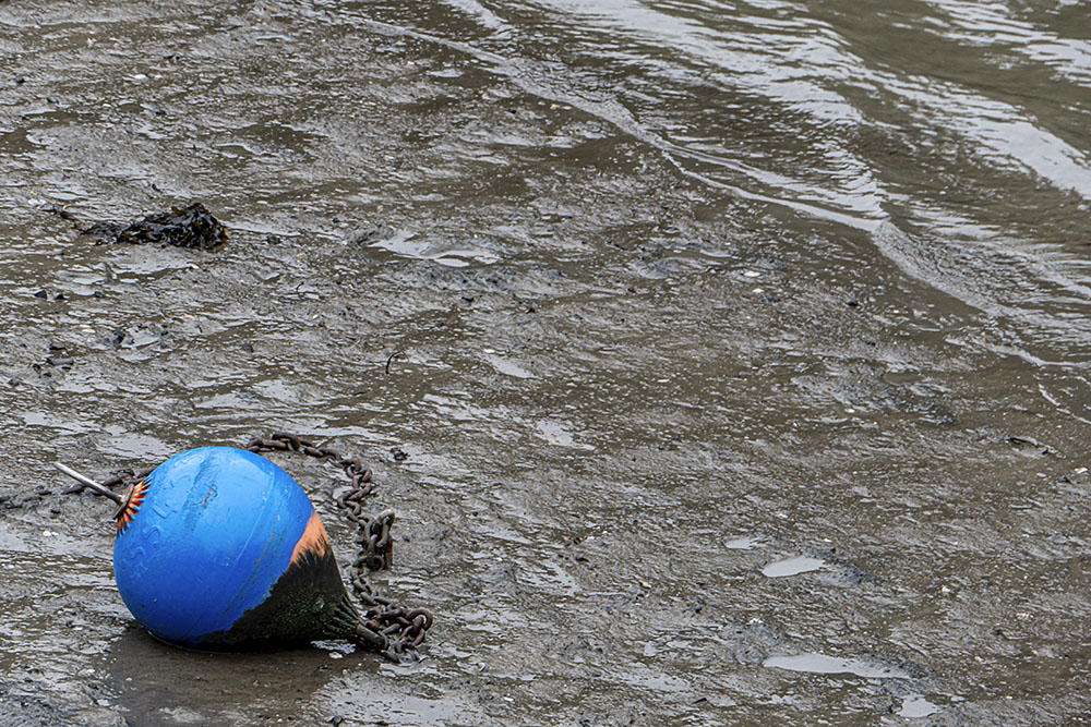 Una composición nada complicada, tan sólo observando la orilla, y comprobando que encajen las líneas onduladas, las diagonales, y el manchurrón azul atrayendo toda la mirada, de la boya en el ángulo inferior izquierda. Texturas diferentes, brillos distintos. Composición, sólo composición. Mínima edición