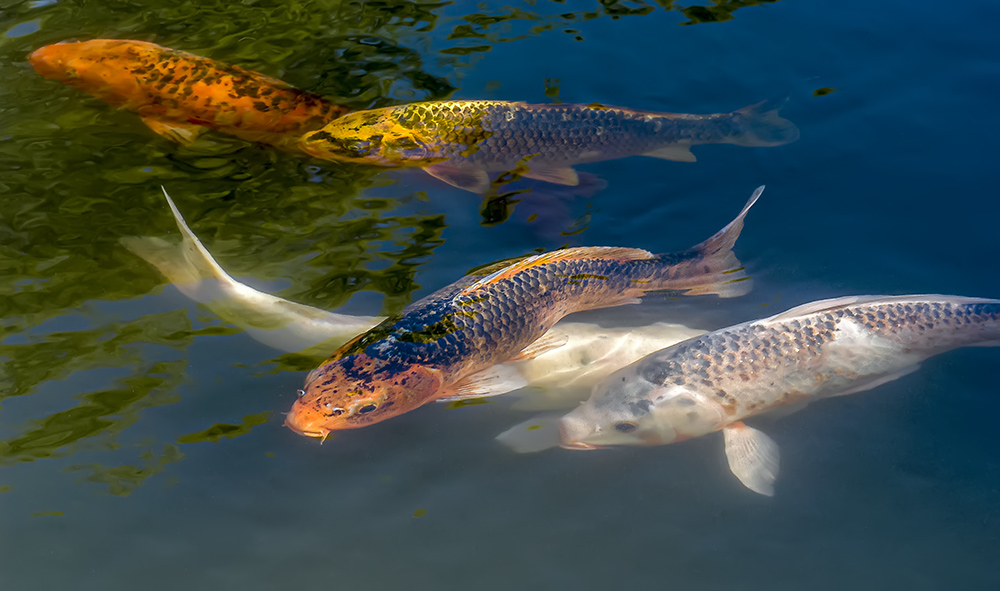 Entre los muchos estanques que se hallan en este jardín privado (La Bambouseraie) repleto de diferentes especies de bambú, en un entorno de marcado aire oriental, se encuentran siempre las habituales carpas, que llenan con su colorido diverso unas aguas no siempre adecuadamente limpias. Mínima edición