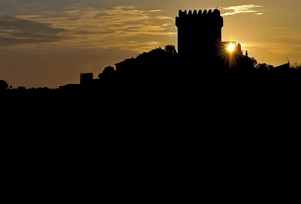 El castillo de Alarcón, otrora bastión clave de la zona, es ahora un pequeño parador de turismo, de grata apariencia y muy elegante. En la imagen, hay poca información, porque se prefirió dar preeminencia al contraluz del crepúsculo, donde destacara la aún prominente torre del homenaje. En la edición, hubo de reducirse el ruido de color, pues la toma fue hecha con ISO alto