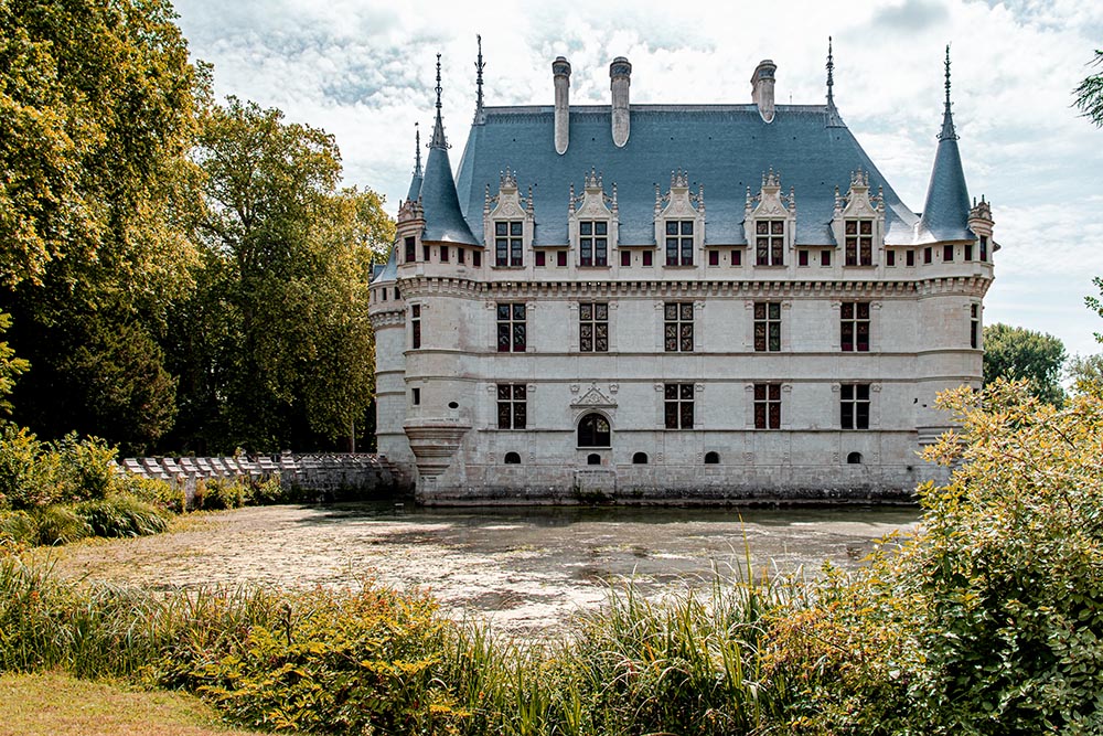 Uno de los más bellos "Chateaux de la Loire", y joya de la arquitectura renacentista francesa. Fue erigido sobre una pequeña isla del río Indre en el primer cuarto del XVI, con una planta en forma de "ele", y con influencias claramente italianizantes, aunque la coronación de pizarra en forma de pináculo de los torreones y la cornisa inclinada son claramente franceses. Al estar completamente rodeado de agua y vegetación, sus formas y su fotogenia destacan más. En la edición se alteraron muy ligeramente los tonos para un mayor contraste de las formas por excesiva contaminación de los verdes