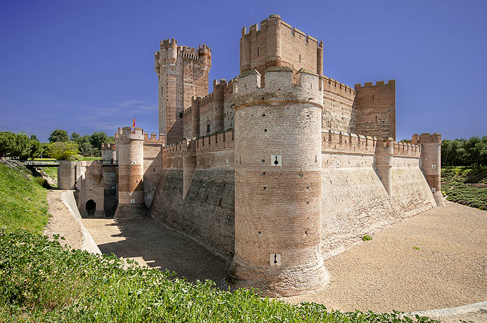 El extraordinario castillo de La Mota fue edificado en ladrillo para la mayoría de su fábrica, reservándose la piedra para pequeños detalles como troneras, escudos y accesos. Aunque de origen anterior, es en el s. XV cuando adquiere su fisonomía actual, sobre todo con la erección de la soberbia Torre del Homenaje (38 m. de altura y 14 de lado), si bien también habrá posteriores cambios. Hoy día es propiedad de la Junta de Castilla y León y se usa como centro de congresos, cursos, seminarios, etc., así como uso turístico y cultural. Mínima edición