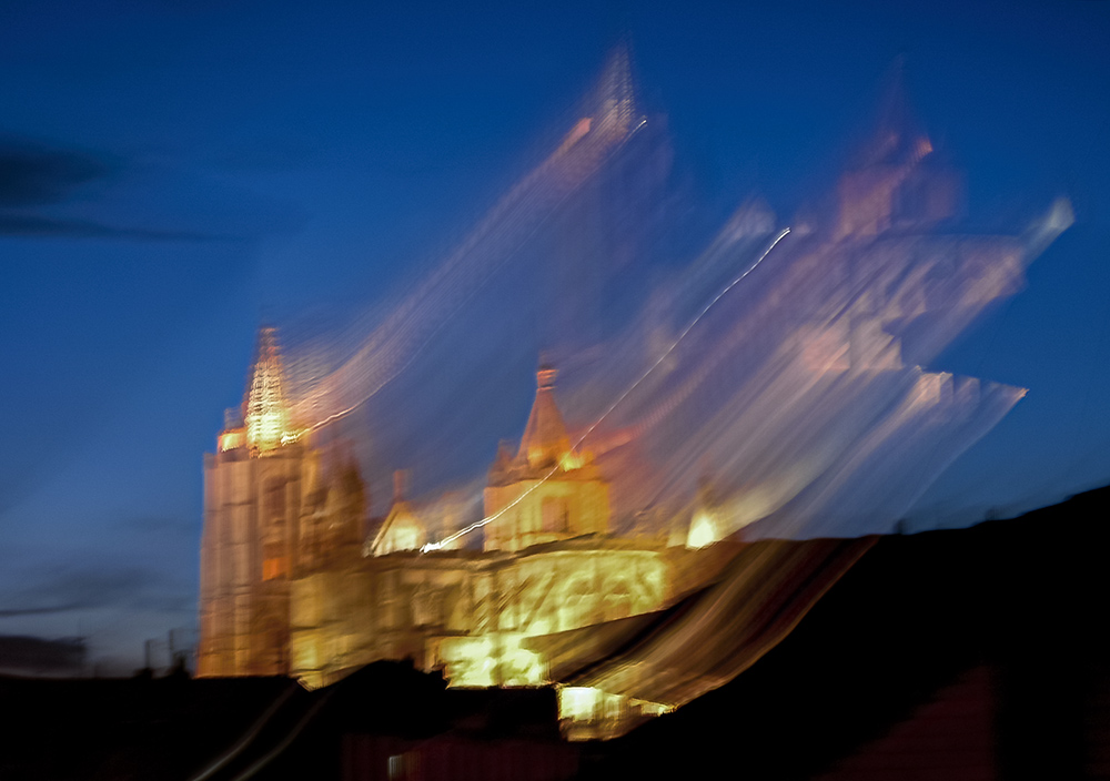 Un sencillo ejercicio de "efecto zoom", que se realiza con una exposición de al menos un segundo mientras se acciona el zoom para cambiar de longitud focal. El resultado es una imagen que duplicará lo fotografiado, dejando una estela de recorrido, que funciona mejor si hay luces brillantes que permitan observar su transformación en líneas más o menos difusas. En la edición se corrigieron los colores, ampliando unos tonos y reduciendo la saturación de otros