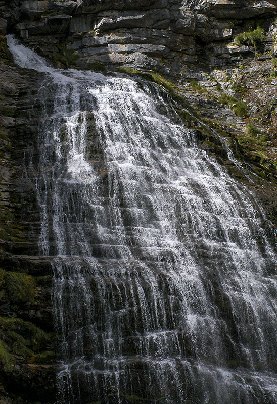 A pesar de que en verano tiene poca agua (la mejor época es primavera, con el deshielo), la famosa Cola de Caballo, en el final del valle glaciar de Ordesa, a los pies del Macizo de Monte Perdido, resulta siempre espectacular. No sólo porque es la coronación de un camino -si no dificultoso, sí largo-, sino porque su disposición es muy hermosa, y se halla en un entorno que realza aún más su belleza monocorde y refrescante. Mínima edicion