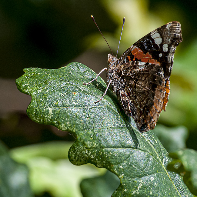 Nunca puedo decir de qué especie se trata; no entiendo de lepidópteros (ni de otros insectos), pero sí me gusta captar su colorido y sus formas tan llamativas, sobre todo cuando combinan con elementos que les están próximos produciendo una buena composición. En la edición, se reforzó un tanto el enfoque