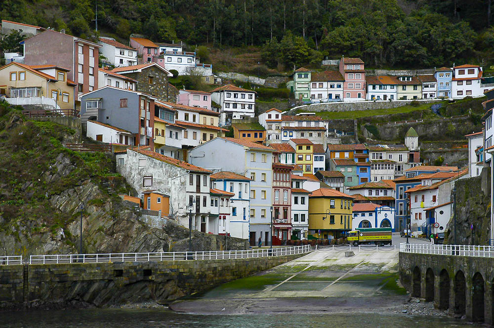 No es habitual ver este muy turístico pueblo de la costa asturiana así, tan vacío. Por lo común, las grandes riadas de gente hacen de él uno de esos destinos hermosos, pero demasiado atrayentes para todas las edades y procedencias. En esta toma -tópica y postalera-, la época (primavera), el día deslucido, pero sobre todo el ser un día laborable influyeron mucho para no ver cientos de personas en la bella plaza-anfiteatro. Por fortuna. Mínima edición