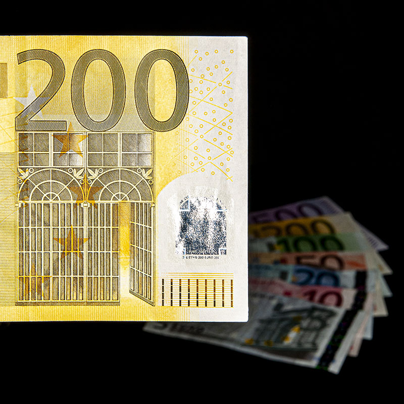 Otra muestra más de la serie de macrofotografías que realicé sobre los siete billetes de banco de la moneda Euro. Mínima edición