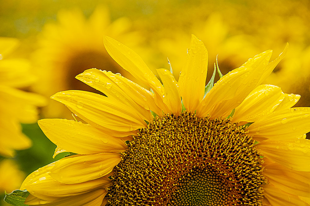 El verano llena de girasoles floridos las grandes llanuras francesas desde el centro hacia el sur. Se ven por doquier. Luego, con tanta cabeza "igual", es complicado lograr una composición que resulte agradable. A veces, el desenfoque extremo de un diafragma amplio ayuda. Mínima edición