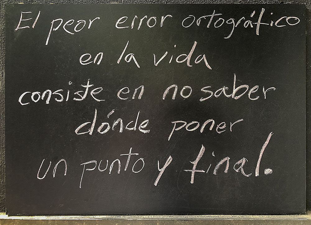 En una tienda de regalos de la calle Mayor me encontré esta pizarra con un mensaje excelente, definitivo, escrito con la prescriptiva tiza. Ese que tantas personas no querrán, no sabrán o no podrán seguir. Lamentablemente. Mínima edición