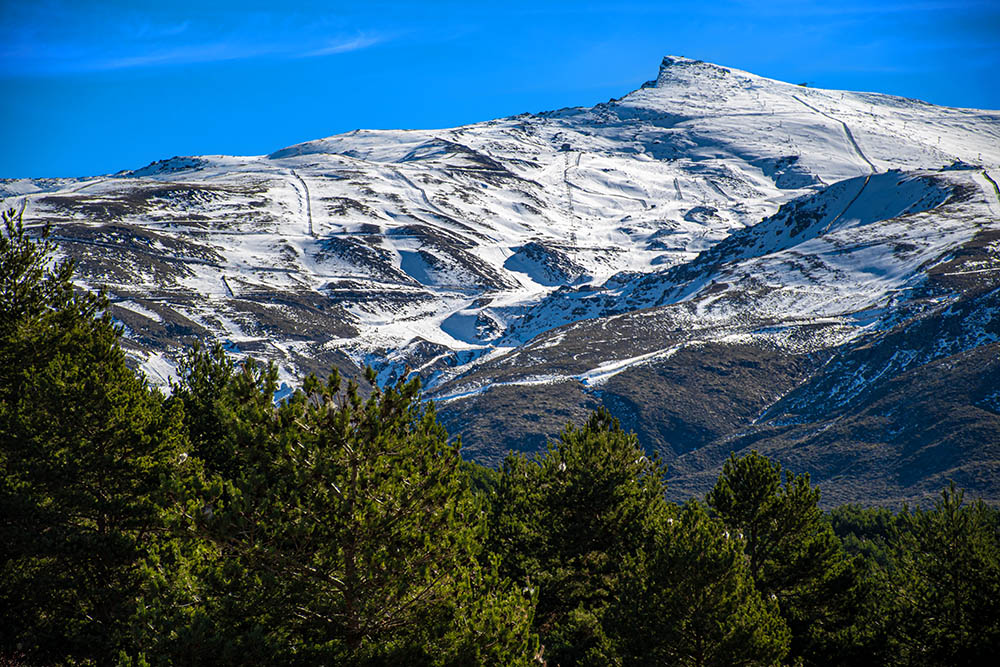 A la tercera, fue la vencida, y por fin pude ver Sierra Nevada sin niebla ninguna y con el sol espléndido que se le presupone a la estación de esquí más meridional de Europa. El pico Veleta (3398 msnm), que se aprecia a la derecha de la imagen, es mucho más atractivo que su compañero el Mulhacén, pese a ser éste algo más alto (3479 msnm). Mínima edición
