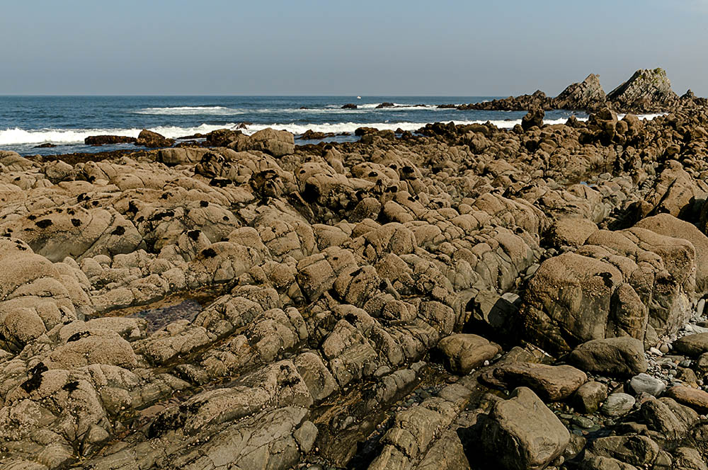 En marea baja, la escollera que queda fuera del recinto "amurallado" del puerto, deja ver un buen conjunto de rocas de tipo silíceo, como cuarcitas, coronado en la parte superior por dos pequeñas elevaciones de estratos oblicuos que quedaron en esa posición tras haber sido removidos hacia arriba por las fuerzas orogénicas, algo habitual en la costa occidental asturiana, ya desde Salinas mismo. Mínima edición