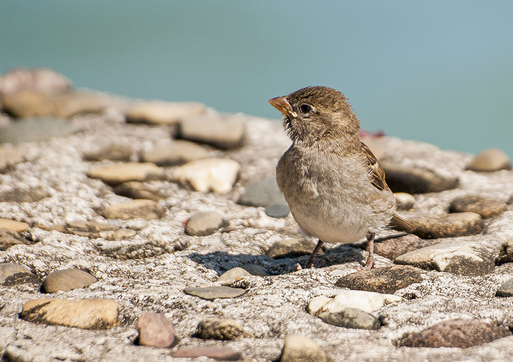 Hubo un tiempo en que los gorriones pululaban por doquier en cualquier ciudad. Hoy no es así. Las causas son muchas. Según parece, la contaminación atmosférica, las talas masivas, la invasión de especies exóticas como la urraca y la cotorra argentina, que atacan sus nidos y compiten por el alimento, el cierre de alcorques y la eliminación de los grandes árboles de sombra, la utilización de plaguicidas inadecuados y sobre todo la dificultad para hacer sus nidos en los edificios actuales, que carecen de huecos y refugios que puedan ser utilizados por este tipo de aves autóctonas. Todo ello motiva que aunque parezca increíble, este ave tan vinculada a nuestra especie, se encuentre en franca decadencia, que puede abocar a ser incluida entre las que presentan riesgos de extinción. En la edición, se recortó la imagen para ofrecer un mejor primer plano y se potenció algo el enfoque
