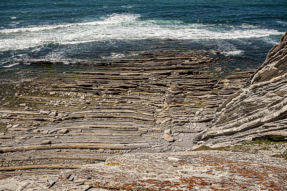 La formación rocosa erosiva denominada "flysch" resulta muy evidente en la costa vasca, tanto en su vertiente española como, en este caso, en la francesa. Asoma con facilidad con el ritmo intermareal, y es muy aleccionador de sus diferentes formas. Las hipótesis sobre su formación siguen arrojando polémicas, pero lo que no ofrece duda es la plasticidad de sus formas. Mínima edición