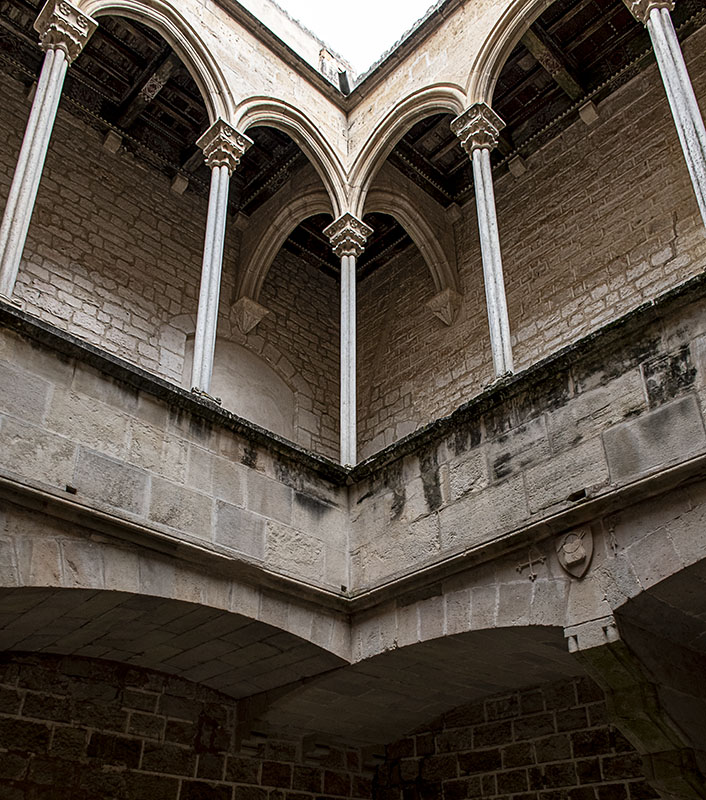 En el Monasterio cisterciense de Santes Creus conviven estructuras claramente adscritas a lo que entendemos por dependencias monasteriales, con otras que, si no fuera indicado, parecería que podrían adscribirse a un palacete o edificio civil de la época. Esta galería superior de uno de los pequeños patios interiores, recorrida por las columnillas típicas del gótico catalán, es buen ejemplo de ello. Mínima edición