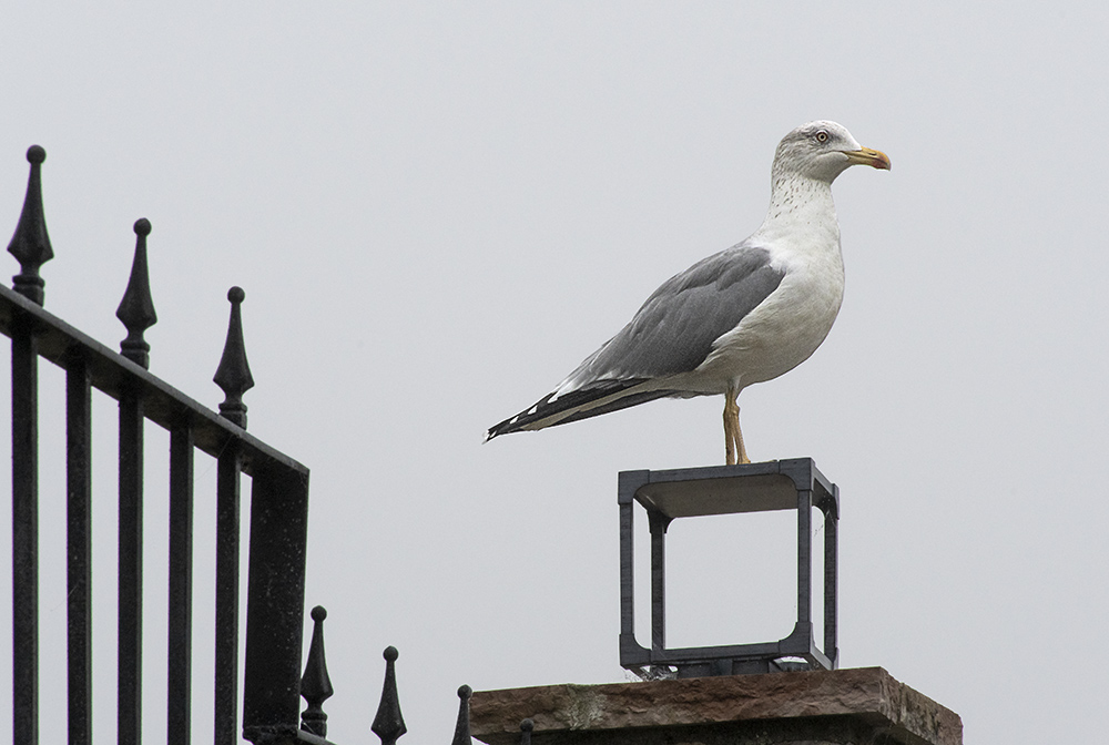Si titulo la imagen así es porque la gaviota parece un elemento decorativo más de la verja de entrada al chalé donde fue realizada. Las gaviotas se posan donde les da la gana, y a veces se integran estupendamente en el contexto. La edición sólo equilibró las líneas rectas y acentuó un poco el enfoque