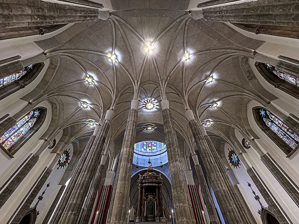 Uno de los pocos edificios interesantes de la isla de Tenerife es la catedral de La Laguna, que se caracteriza por ser un templo neogótico que al ser restaurado hace pocos años se utilizó el hormigón y las fibras de polipropileno. Aun así, la estética del semicírculo de pilares que separan el presbiterio de la girola resulta notable y muy fotogénica, a pesar de la sensación de edificio moderno que muestra. Mínima edición