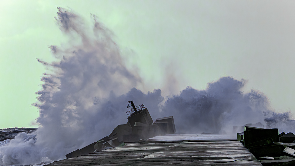 La Naturaleza, enfadada, se atreve con todo, incluso con lo más duro producido por el ser humano. Y lo derrota, claro. Alteración cromática de los tonos en la edición