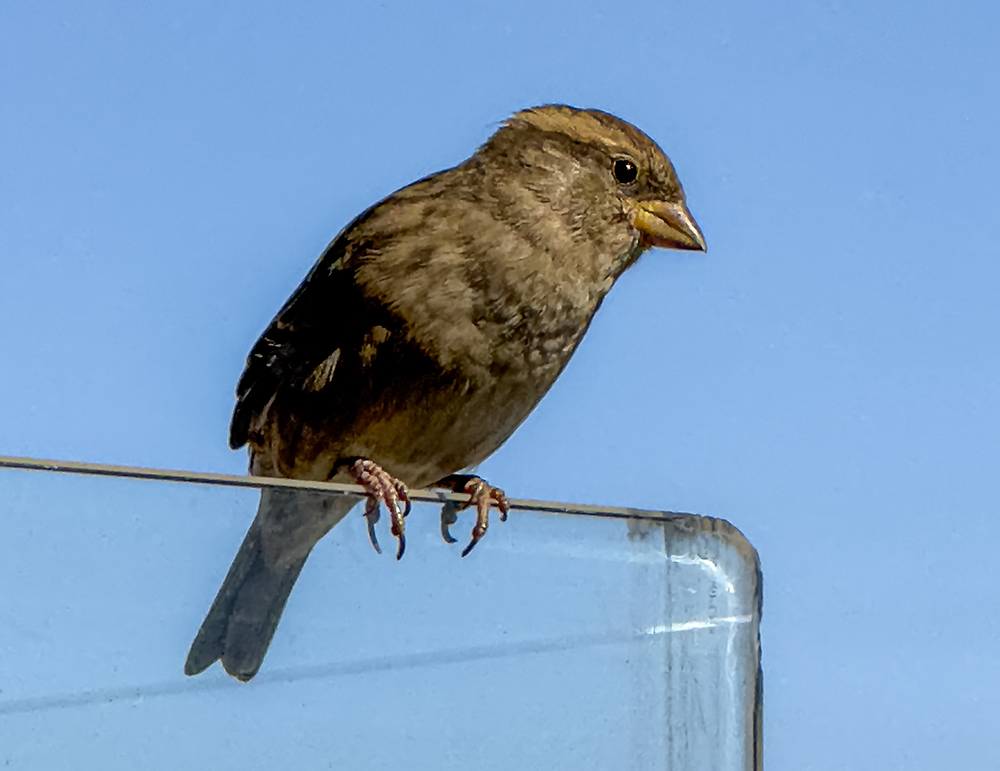 Cada vez se ven menos en las ciudades. Pero a mí siempre me transmitieron buena onda. Su picardía, su apariencia no agresiva, la habilidad de sus evoluciones, compensaban el escaso atractivo de su plumaje, pardo, con partes más claras que otras. Pero, sobre todo, son de los pocos animales libres que podemos observar cuando las circunstancias son propicias. Este aguardaba paciente a que nuestra consumición finalizara, para saquear la mesa de los restos del aperitivo. Mínima edición
