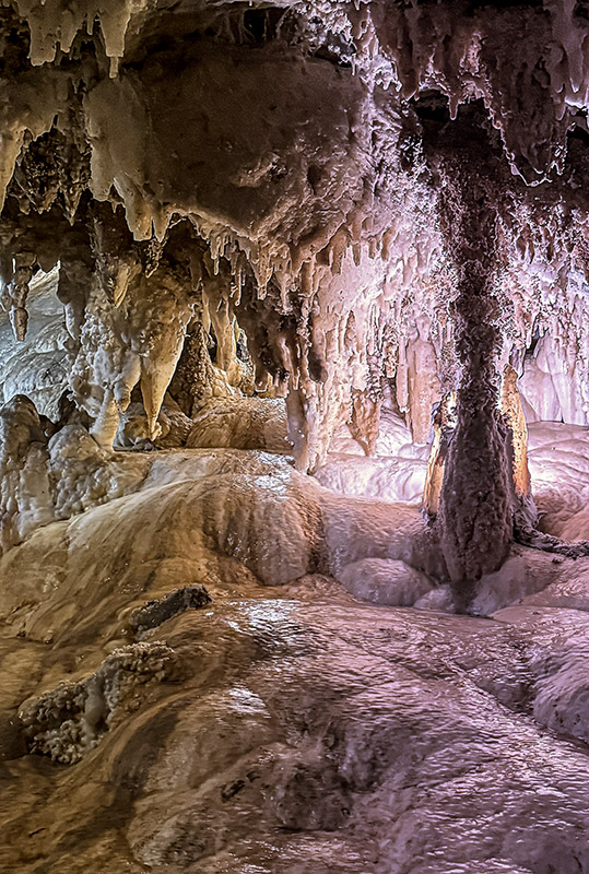 Maravillas de caliza, efectivamente, se observan en esta cueva ubicada, sorprendentemente, en el subsuelo de la propia localidad de Aracena. Las estalactitas, estalagmitas y columnas que se aprecian en la imagen son uno de los muchos posibles encuadres que ofrece este lugar. Mínima edición