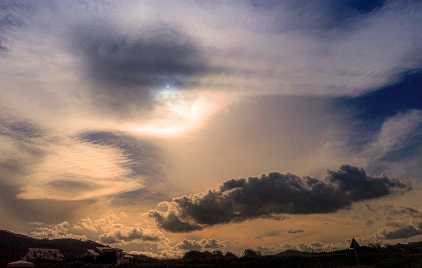 La toma inicial era bastante plana. Al menos, desde el punto de vista cromático. Sí había una configuración de nubes y claros interesante a nivel compositivo, pero no era demasiado mostrable. En cambio, alterar los tonos simulando el cromatismo crepuscular, dotó de mayor intensidad a la vista. Mérito de la edición, en este caso, por supuesto
