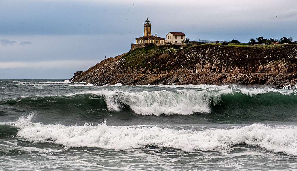 Cuando el temporal da signos de cambio a peor, donde primero se nota no es en el viento, sino en el oleaje, que se torna cada vez más movido y violento. El final del espigón de S. Juan de Nieva, a la entrada de la Ría de Avilés es un buen lugar donde contemplar los trenes de olas que llegan del mar embravecido antes de ser encauzadas y relajadas por la propia ría. Desde arriba, el faro de Avilés contempla impasible algo a lo que está muy acostumbrado. Mínima edición