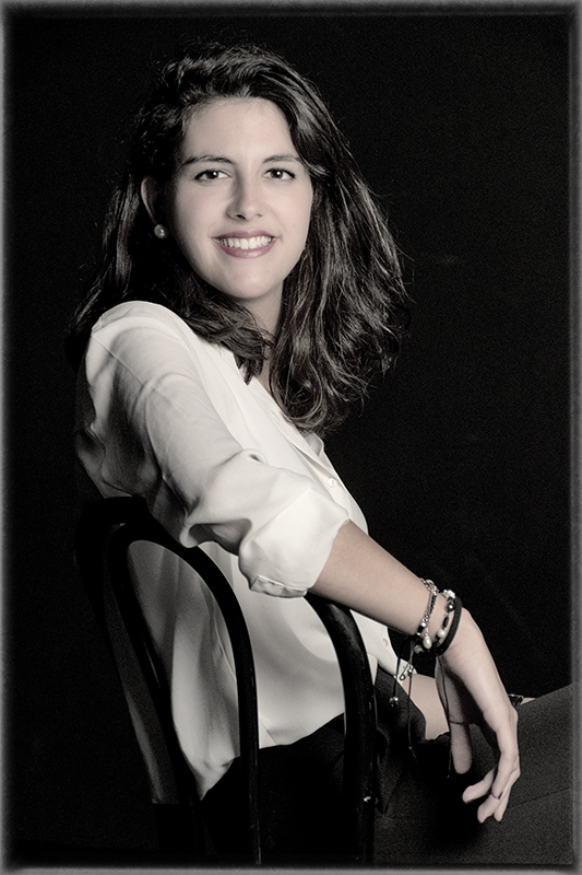 Fotografía que formaba parte de una sesión de un cursillo de flash en interiores. La hija del profesor se prestó a servir de modelo, y a fe que lo hizo -además de con entusiasmo y ni una mala cara- con gran naturalidad y entrega "profesional". La edición desaturó parcialmente su piel, para evitar rojeces juveniles y una dominante de color poco vistosa, aclaró el pelo y anuló el brillo de la camisa para dotarla de cierta textura táctil.