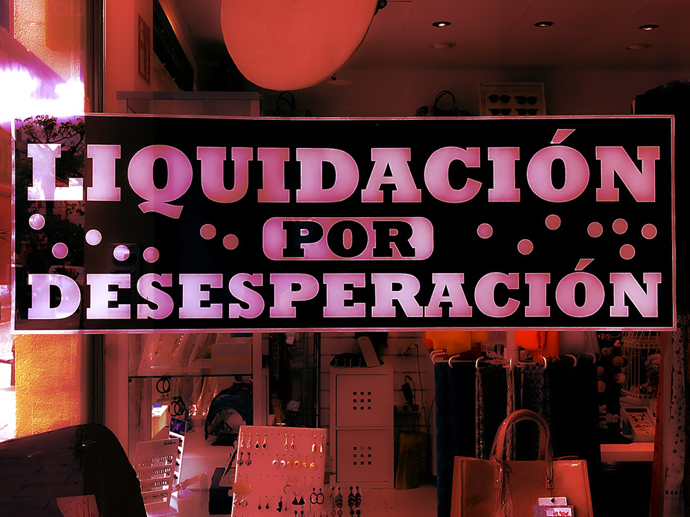El cartel es lo suficientemente inusual como para llamar la atención a cualquiera. Sobre todo, porque no suelen ser reclamos sinceros, sino que buscan llamar la atención. En este caso, la llama justo por la sinceridad que demuestra. Cabe preguntarse si la situación a que llegaron no vino precedida de demasiados comportamientos sinceros. En la edición se transformaron los colores para darle un mayor énfasis y para ocultar un tanto los objetos de la tienda, que interesaban menos