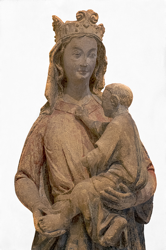 Escultura en piedra arenisca de la segunda mitad del s. XIII, que representa a la Virgen con el Niño Jesús, en pose más natural y realista, con una ternura mayor entre ambas figuras, típicamente gótica. Es obra anónima de la zona de L'Île-de-France o de Champagne, que se halla en el museo Thyssen-Bornemisza de Málaga. Se quemó en blanco y negro todo el fondo de la pared, para que destacara con claridad el conjunto escultórico