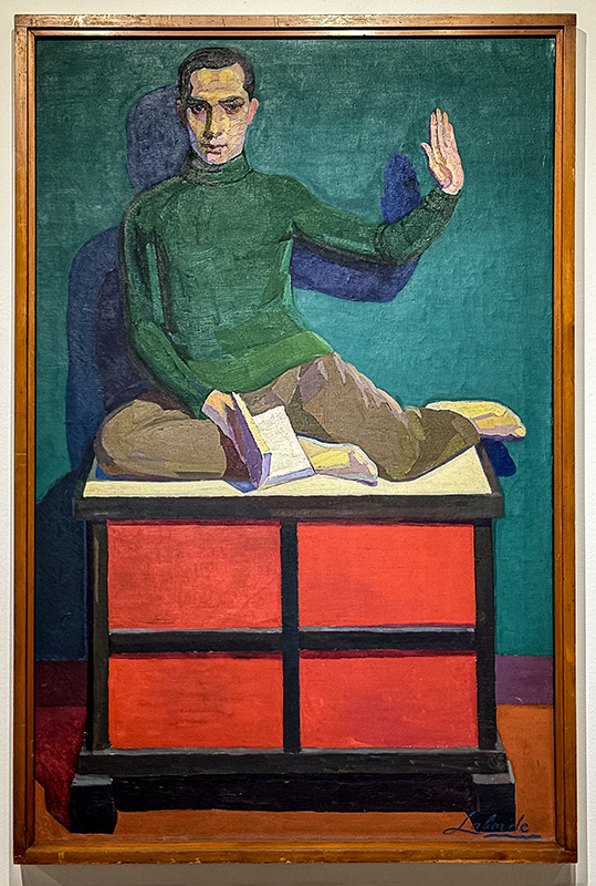 No conocía ni al autor, ni al retratado, pero la pose inusual, los colores planos, y el gran formato me atrajeron muchísimo, y no sólo porque aparezca en él uno de mis temas favoritos: el libro. Es un cuadro impactante, bajo varios puntos de vista, en óleo sobre tela, pintado alrededor de 1928, que casi justificaba por sí mismo la visita al Museo de Artes Visuales de la capital uruguaya. Mínima edición