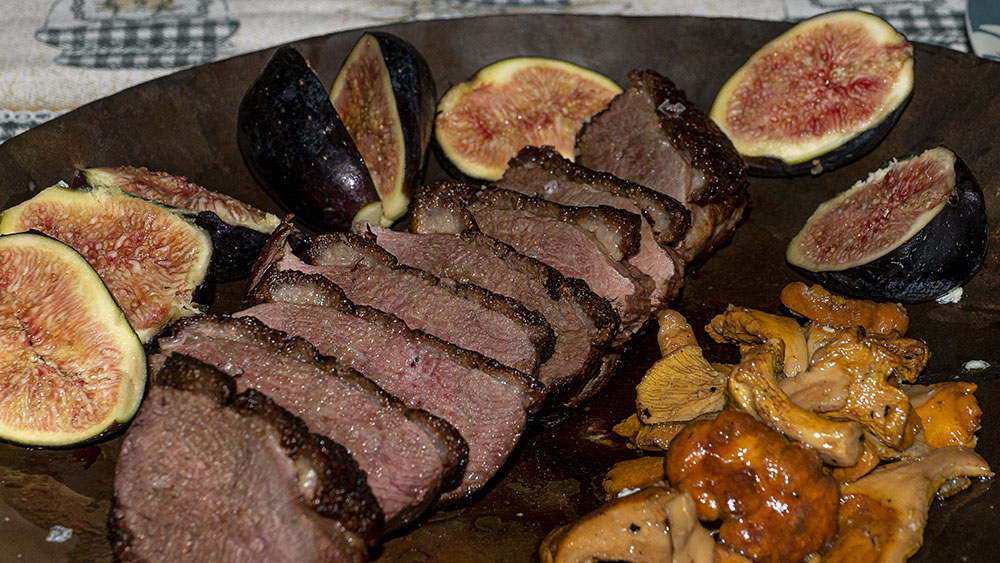 MAIGRET DE PATO, CON HIGOS Y SURTIDO DE SETAS