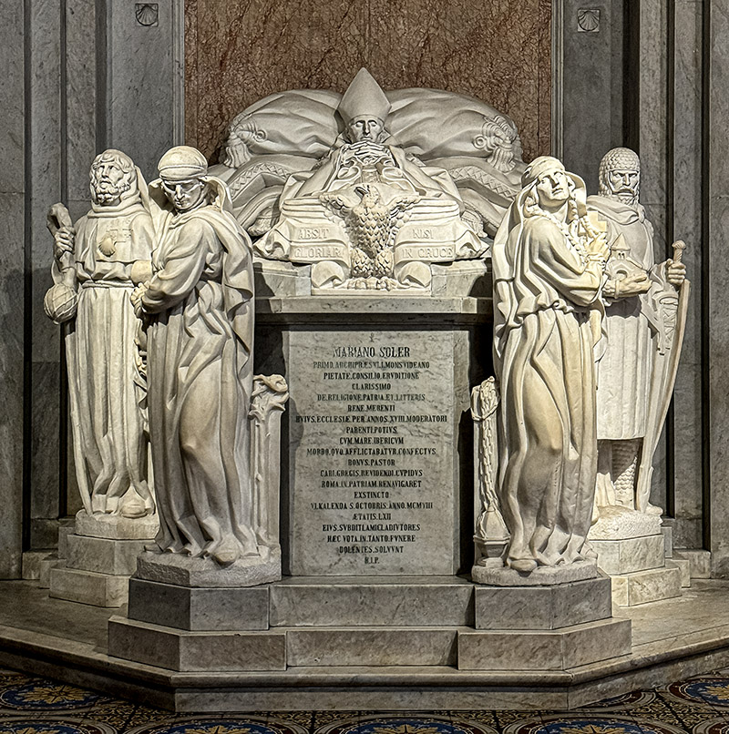 La tumba de Mariano Soler (1864-1908), primer arzobispo de Uruguay, en la catedral de Montevideo, es un buen ejemplo de las paradojas en las que siempre se ha movido la Iglesia católica. El conjunto escultórico funerario, ubicado en la Catedral Metropolitana, fue encargado al escultor uruguayo Juan Zorrilla de San Martín. El imponente y ampuloso monumento funerario, de estilo renacentista, está realizada en mármol blanco. Se instaló definitivamente en una de las naves laterales de la Catedral, en 1930. Mínima edición