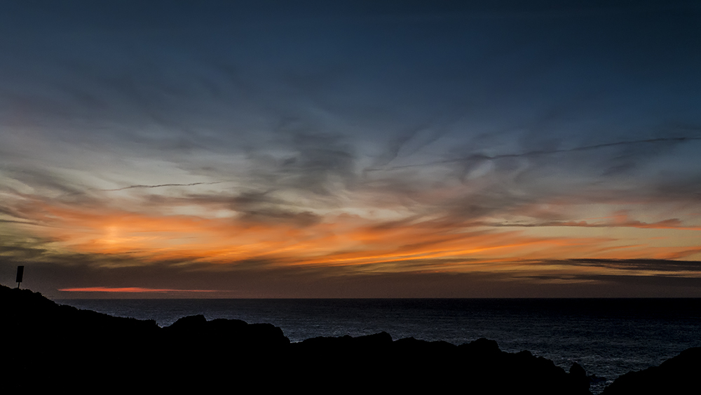Desde lo alto de la playa de Cerrías, se pudo observar este magnífico celaje crepuscular. No tiene mucho mérito. Sólo hay que estar allí para captarlo. Eso, y saturar un poco los colores en la edición