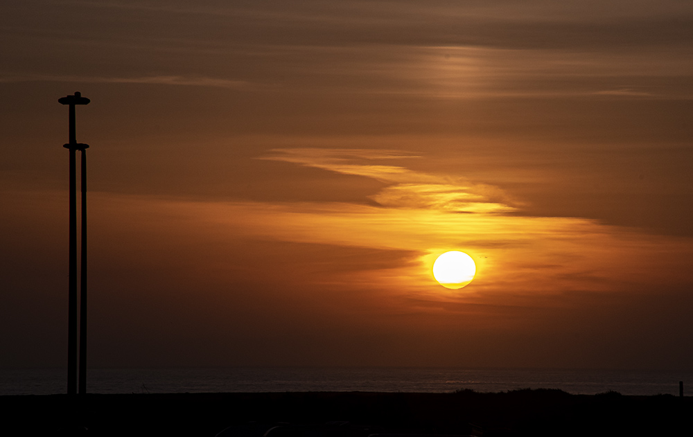 Sólo un crepúsculo, habitual en zonas del oeste peninsular cercano a la costa. Sólo dos elementos: el sol y un mástil cuyo uso no se me alcanza en este momento, y cuando realicé la toma no me paré para averiguarlo, ocupado como estaba en paladear la pincelada final que el día me regalaba en su final. Mínima edición
