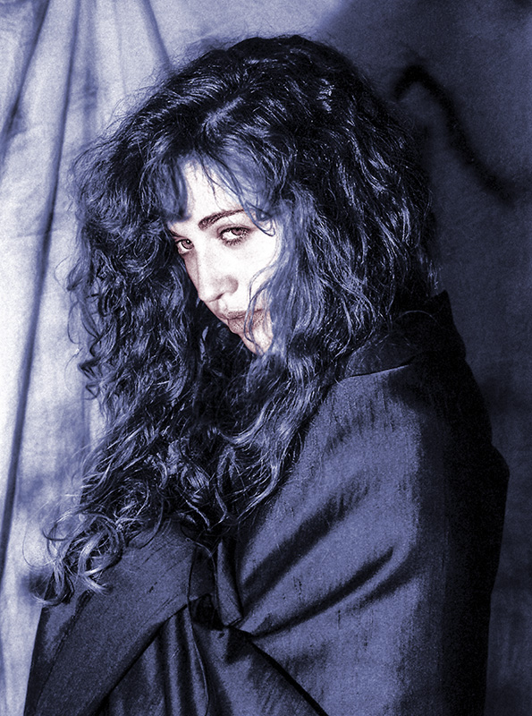 Ella, la más bella. Se escaneó el negativo original analógico en B/N, y en la edición se tiñó toda la imagen con azul violáceo, salvando el rostro con otro virado más asanguinado para producir la ilusión de ser una foto en color