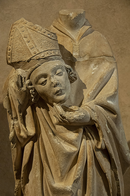 En el magnífico museo de los Agustinos de la capital de Midi-Pyrénées, se halla esta escultura de un obispo mártir, portando su propia cabeza. Es una obra en piedra caliza (antaño policromada) de finales del s. XV, que muestra un motivo bastante habitual en la Edad Media, como es la visión de un supuesto milagro, en el que el mártir seguiría un tiempo vivo, llevando su cabeza, o bien mostrando sólo el modo en que la persona fue ejecutada, como es este caso. Mínima edición