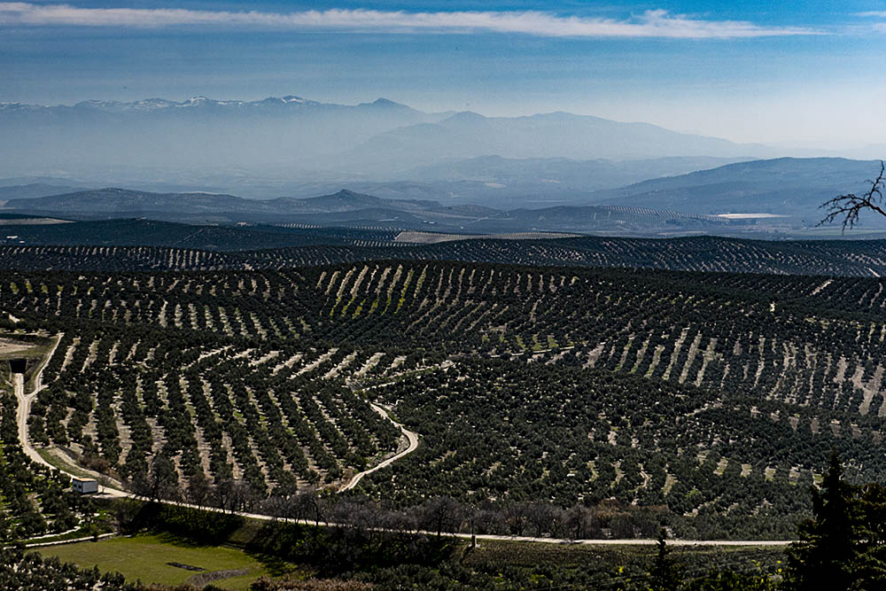 En Jaén, el olivar es casi monocultivo. Desde cualquier punto en que te encuentres, se observan por doquier los miles de puntos oscuros de las copas de los olivos contrastando con la claridad de las tierras arcillosas, yesíferas o margosas donde más a gusto se siente este árbol. En esta toma, desde lo alto de la localidad ubetense, el paisaje sólo podía ser el que es. Edición potenciadora de contraste