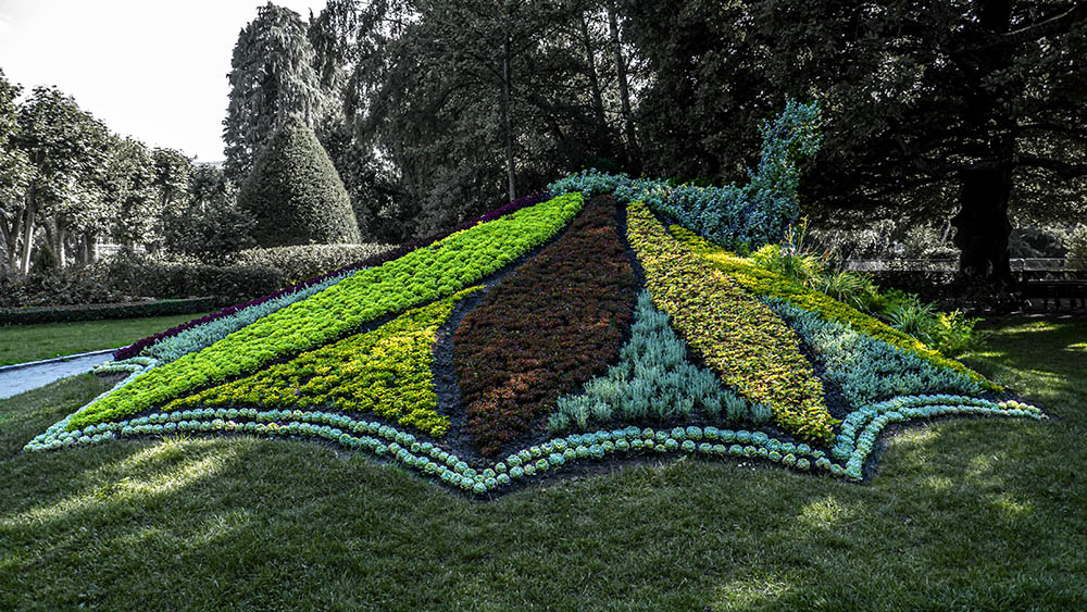 Paseando por la ciudad auvernesa de Le Puy-en-Velay, configurada por su carácter volcánico y la erosión posterior, dimos en un parque con esta escultura vegetal de un pavo real, configurado por parterres de diferente naturaleza y colorido, que nos dieron muy buena impresión. El resto de la vegetación fue desaturado al editar la imagen, para mayor resalte del motivo principal