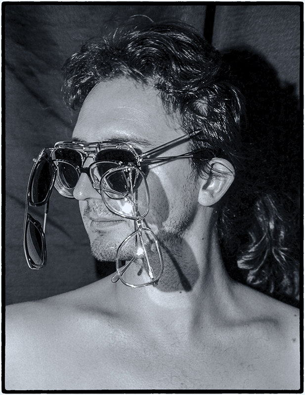 Una de las tomas de la última sesión que llevamos a cabo juntos. Fue uno de los mejores amigos que tuve durante cuatro años clave en mi evolución personal. Nunca le agradeceré bastante todo lo que hizo por mí. Hasta que se evaporó, voluntariamente. En la imagen, tomada con negativo analógico en B/N y escaneada en formato digital, intento extraer algo de su vis cómica, que era mucha y de su falta de pudor ante las cámaras y ante la vida. La imagen final se viró ligeramente al selenio