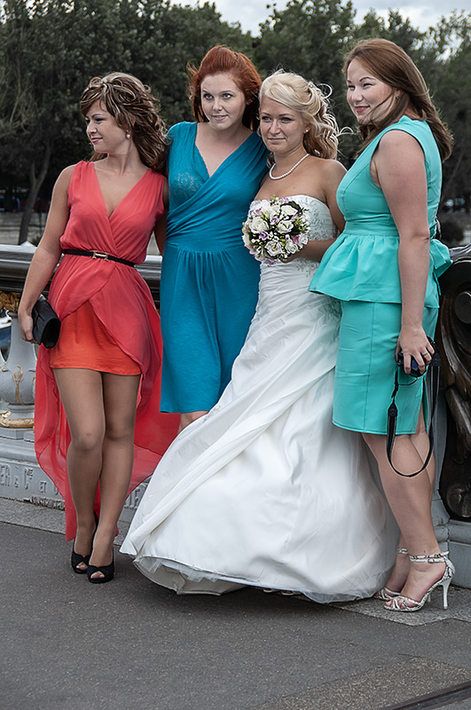 La que preferiría estar bien lejos sería la novia, a la que no se nota muy entusiasmada. Además, hoy los novios ya se “conocen” bien, y la ilusión de antes por este día es algo muy venido a menos, y lo que más se quiere es que acabe cuanto antes, y “que pase el trago”. La siguiente en “caer”, si tiene un poco de suerte es nuestra buena amiga la chica de la derecha, que es la que más ganas tiene de terminar su soltería. Y lo que dure esa amistad bien se podría guardar en un cestito de coger setas. Así que ya ves que soy algo menos optimista y divertido que vos. De todos modos, me encantó el reto. Besosss