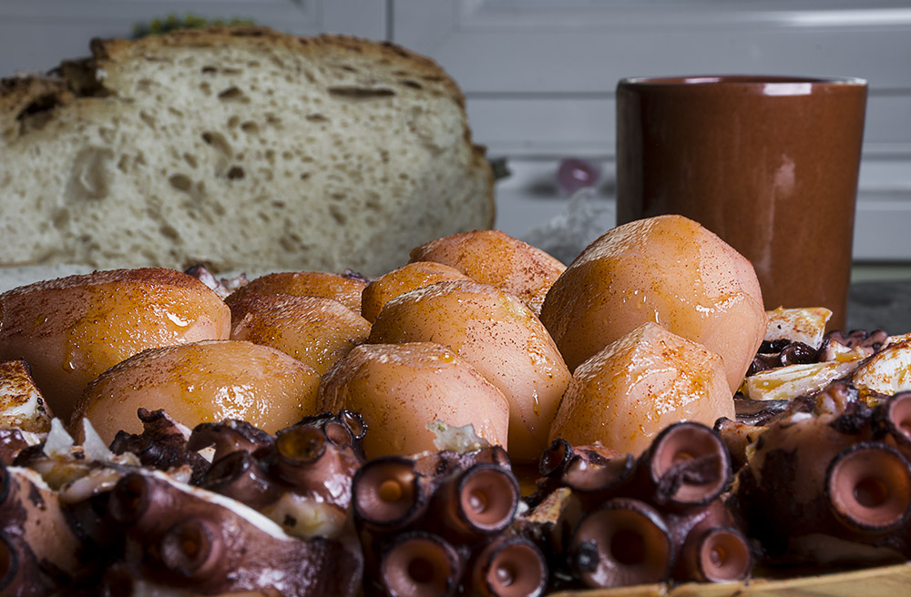 Bodegón de Pulpo a feira (La Coruña, Galicia, España)