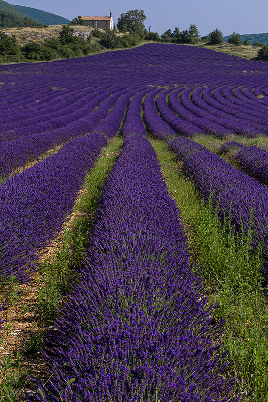 Las plantaciones de lavanda de la Provenza son siempre un espectáculo. No se sabe a quién se le ocurriría disponer las plantas en hileras -imaginamos que será cuestión práctica, como en tantas plantas-, pero la fotogenia resultante es imbatible. La repetición rítmica de los macizos alineados forman unas composiciones muy hermosas que no requieren pericia alguna para captarlas. Están ahí, esperando a ser captadas. Mínima edición